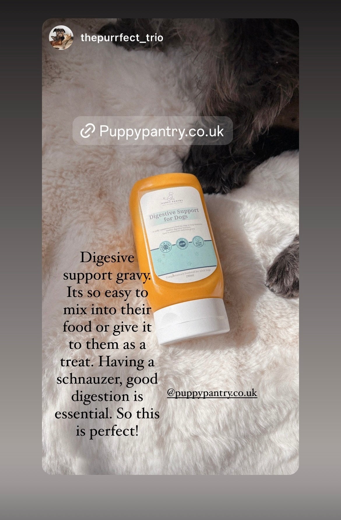 "My senior dog was really struggling with his joints, but the Puppy Pantry Joint Support Chews have made a huge difference. He's more active and playful now. I also add the Digestive Gravy to his food to help with his sensitive stomach. Highly recommend Puppy Pantry!"